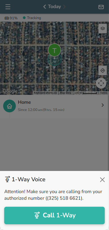 - The AngelSense GPS device picks up automatically and 1-Way Voice mode begins.