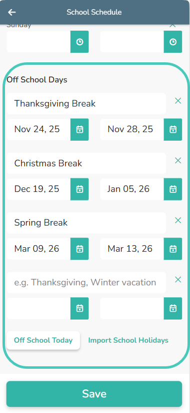 2. Either remove the checked box for the voice feature you wish to use OR scroll down to the bottom and click “Off School Today”, and then “Save”