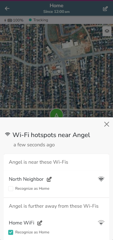 Indoor Search (Wi-Fi Locator) detects and then shows the strongest Wi-Fi hotspots (including your mobile hotspot) around our loved one indoors. This feature was developed because GPS isn’t accurate indoors since it requires line of sight with satellites and we needed to have different ways to overcome these GPS limitations and get additional hints to our loved one’s exact location.