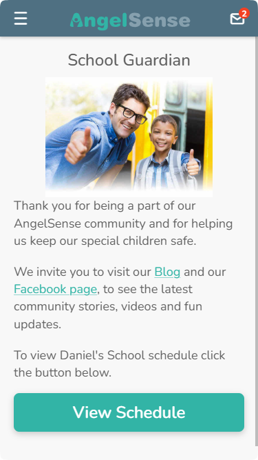 The School Dashboard gives the School Guardian(s) the option to update the School Schedule* via the AngelSense app, and optionally also access to the child’s Timeline during school hours.
