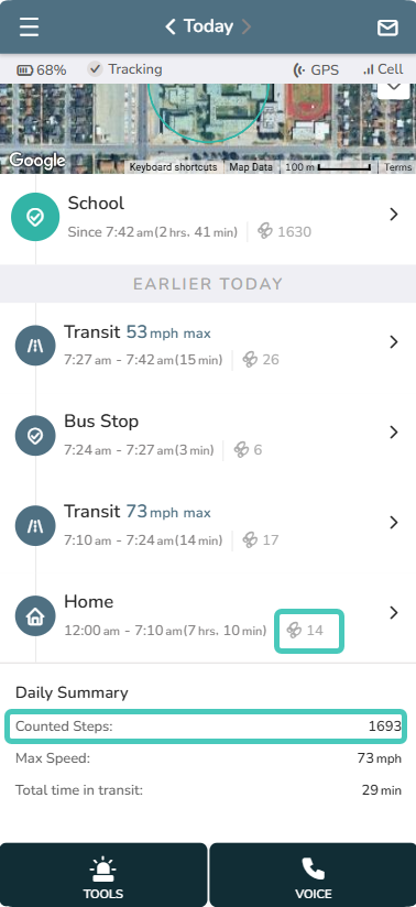 - If steps stopped after arrival at school, it could indicate that they didn’t get off the bus.