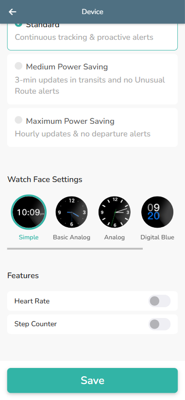 2. Select a Watch Face, select the ‘Step Counter’ box, and Save
