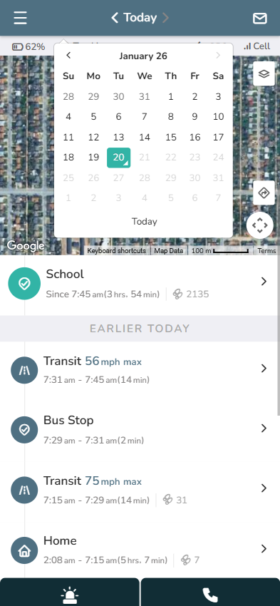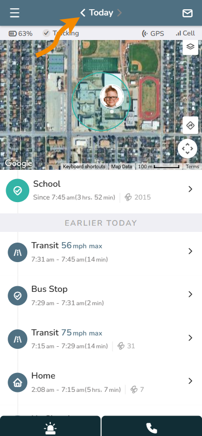The AngelSense Timeline is a daily activity log of locations and transit reports that are stored within the AngelSense App and can be accessed via smartphone, computer or tablet using your AngelSense account username and password. The GPS location will update at different intervals depending on the location or activity. A Transit entry occurs anytime the AngelSense device is in movement. The first entry in the timeline of Today is the “Current Location“.