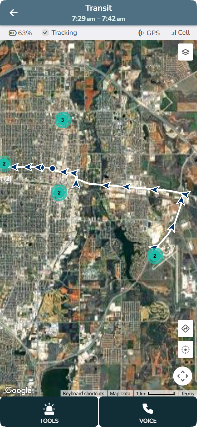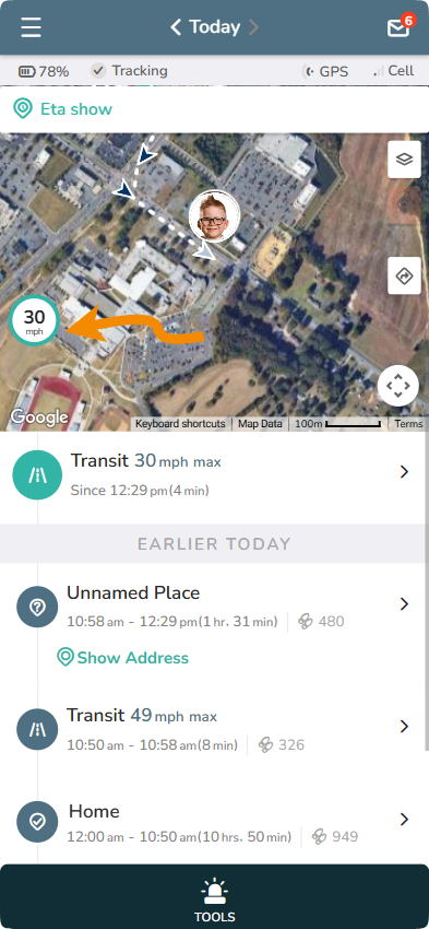A Transit entry shows in the AngelSense app Timeline anytime the AngelSense device is in movement from one Place to the next. This can be when walking, driving, bicycling, etc.
