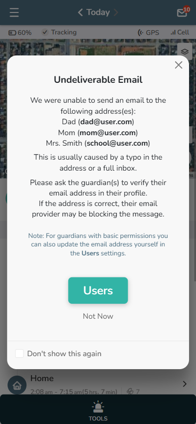 Primary Guardians also receive an alert if one of their Guardians has an “Undeliverable Email”. If they are not a Primary Guardian, you can go to “Guardians” and update their email address. If they are a Primary Guardian, they will need to update their own email address.