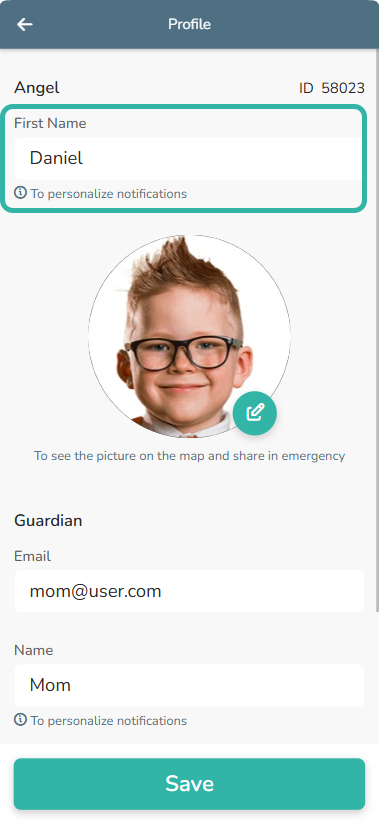 As an AngelSense Guardian, you have the ability to edit or change the Angel’s name (device wearer) and photo.