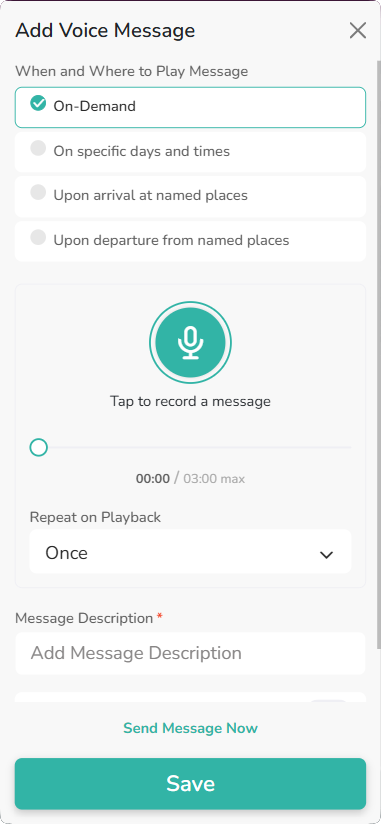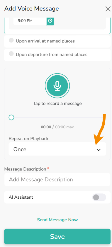 - Define how many times (Once, 2 times, 3 times) the message should be repeated on playback
