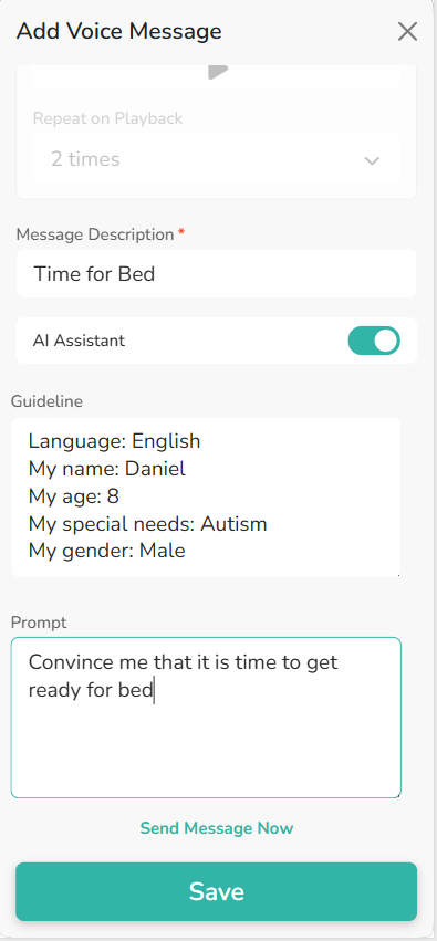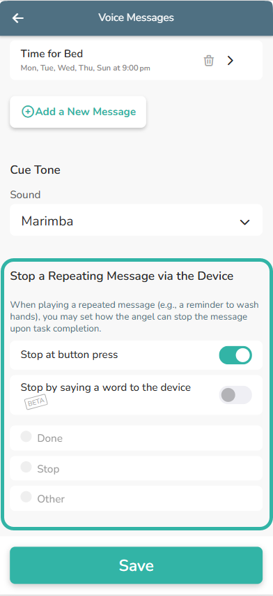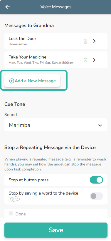 - Enable an option for your loved one to stop a repeating message playing