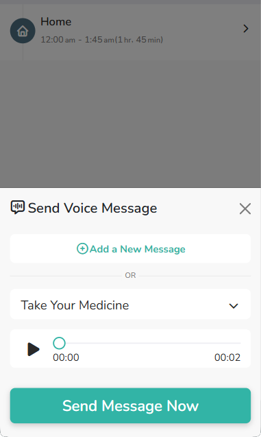 Record Voice Messages and play them remotely on your loved one’s AngelSense device on-demand, or automatically at the time or location that you predefine.