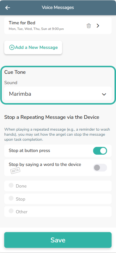 - Enable an option for your loved one to stop a repeating message playing