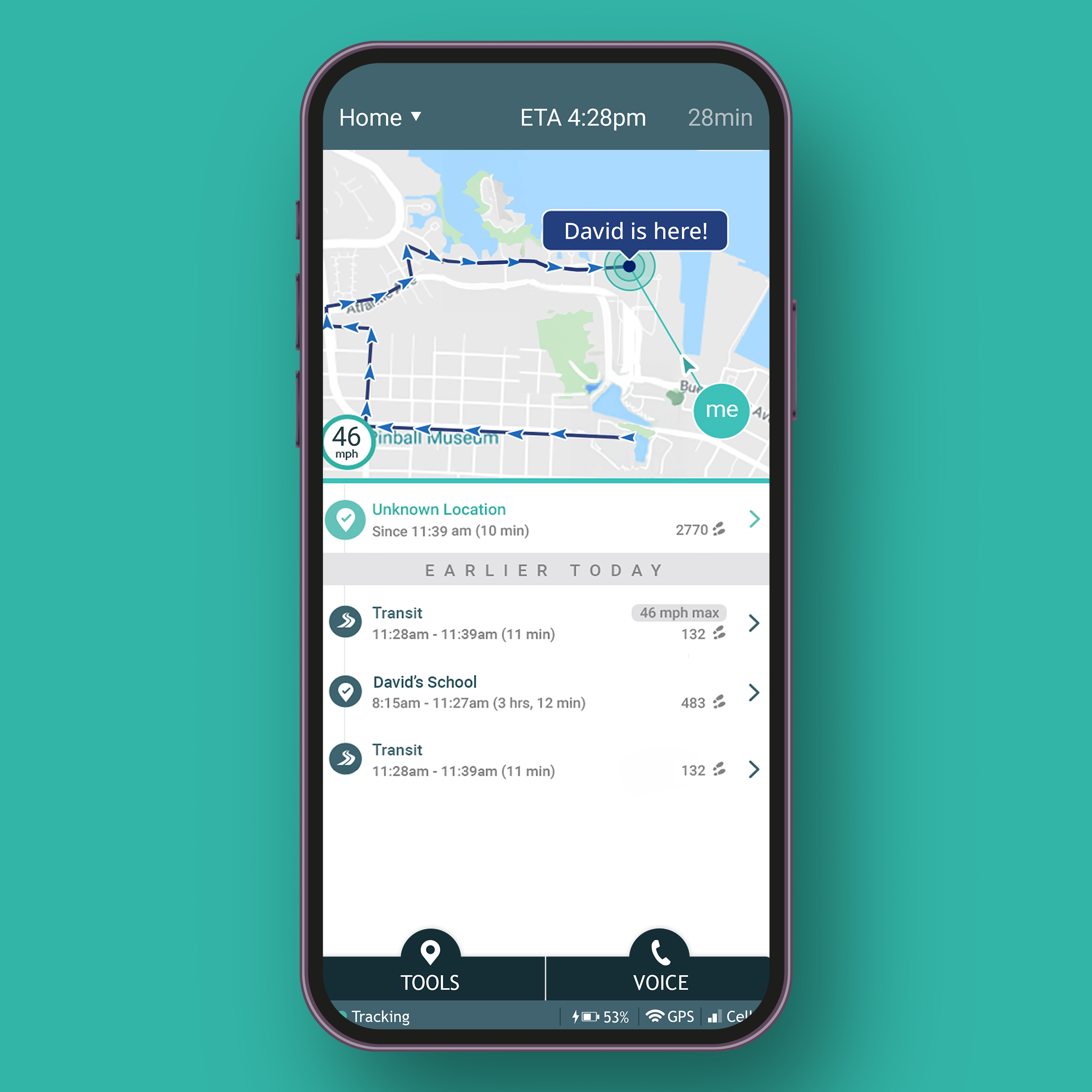 Unique to AngelSense, our Safeguard GPS, works all day, nonstop, even when the app is closed. This allows you to see every place visited and every transit taken with exact times, maps, and other useful information. There is also a complete history so you can go back and review any day in the past.